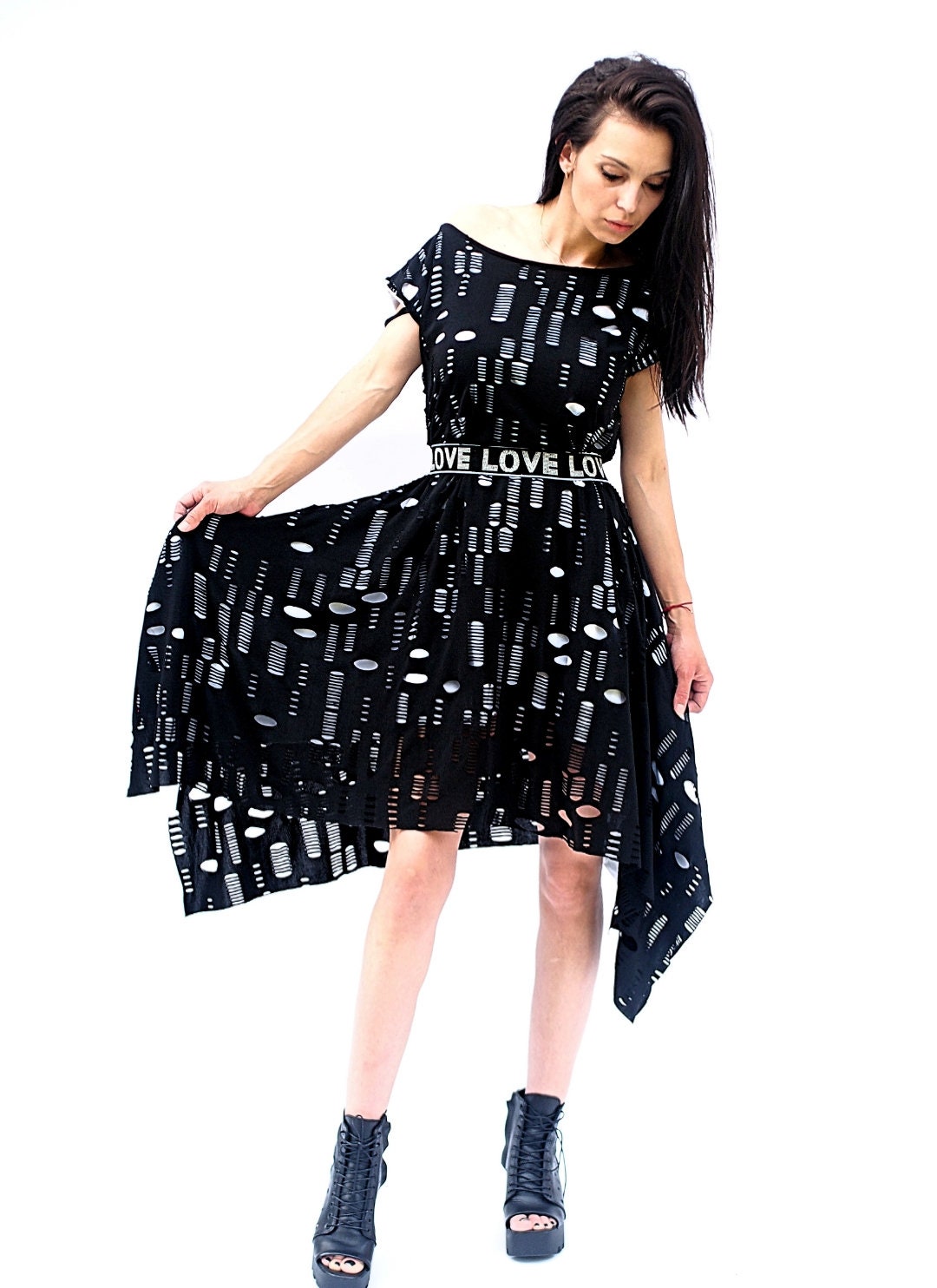 Long Asymmetric Women Dress Maxi Black Kaftan Loose